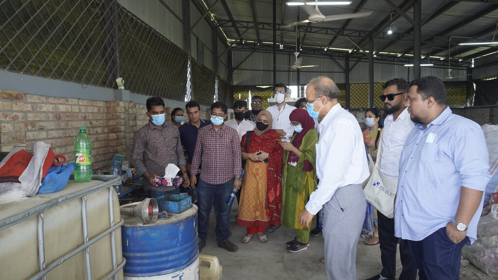 Additionally, the participants witnessed live demonstration of prior FS collection technologies used in Faridpur, such as the locally adapted Gulper (mechanical and motorized). Subsequently, the participants visited pyrolysis plant near the FSTP.
