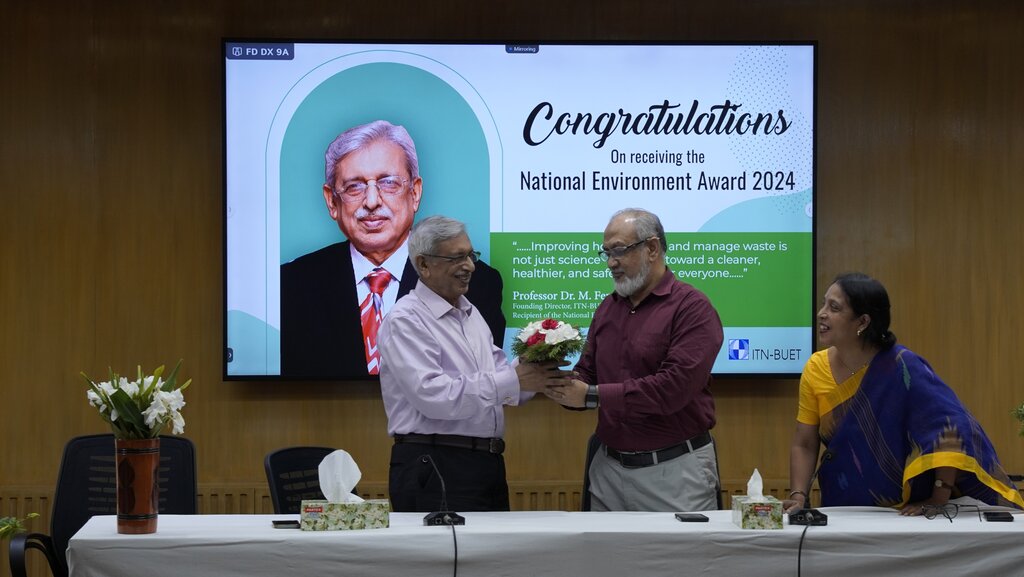 ITN-BUET proudly hosted a congratulatory event on Saturday, July 5, 2025, to honor Professor Dr. M. Feroze Ahmed, Founding Director of ITN-BUET, for receiving the prestigious National Environment Award 2024 (Jatio Poribesh Padak 2024) from the Government of the People’s Republic of Bangladesh. The event was held in the Seminar Room of ITN-BUET.
